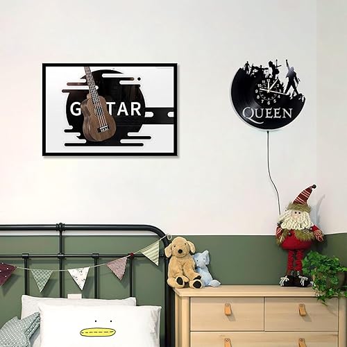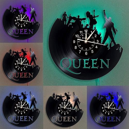 Horloge murale du groupe de rock The Queen en vinyle avec veilleuse LED 7 couleurs rétro pour salon et cuisine - Cadeau unique fait à la main