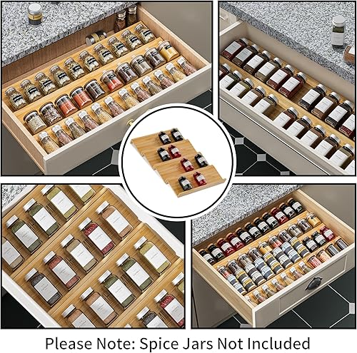 OHHLIHOME Lot de 4 organiseurs de tiroir à épices en bambou – 33 x 11,9 x 4,1 cm – Organiseur de tiroirs pour pots à épices – Organisateur d'assaisonnement pour tiroirs/comptoir (bocaux non inclus)
