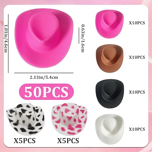 CUCUFA Mini Chapeaux de Cowboy, 50pcs Plastic Mignon Doll Chapeaux, Minuscule Chapeau de Cowboy, Mini pour l'artisanat