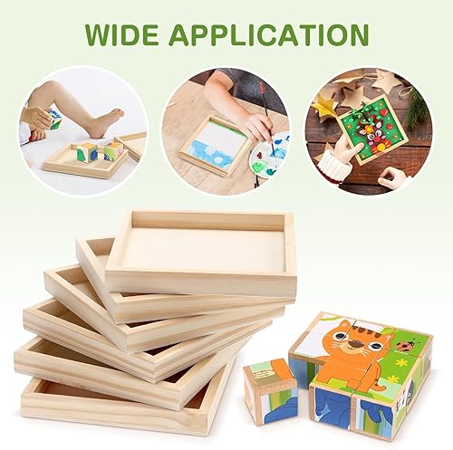 Lot de 6 plateaux en bois de 11,9 x 11,9 cm – Petit plateau de service en bois brut pour matériaux Montessori, travaux manuels à peindre