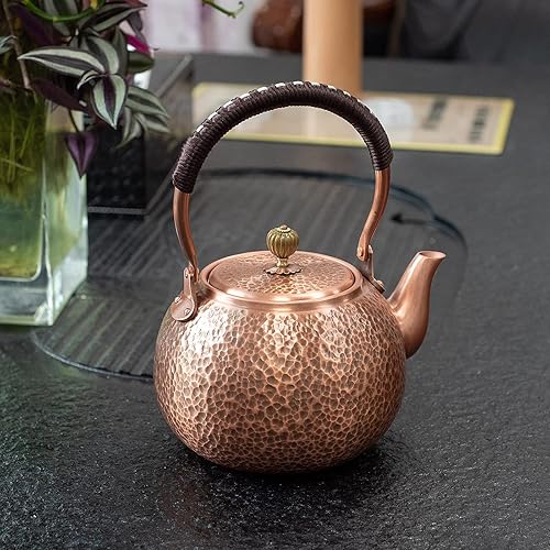 Bouilloire en Cuivre, Théière à Ébullition, Service à Thé Non Revêtu, Capacité : 1,6 L ou 1,2 L (12 Litres)
