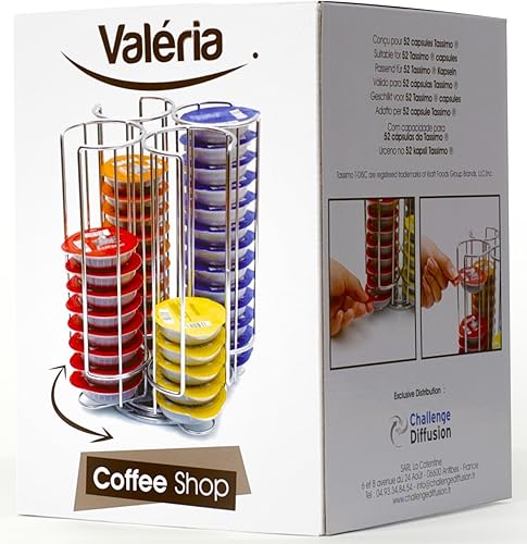 COBB INDUSTRIES® - Valéria CH0012 - Porte Capsules Distributeur Présentoir Rotatif pour 52 Capsules Tassimo Acier chromé