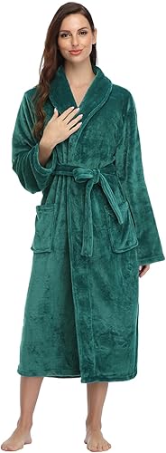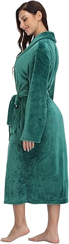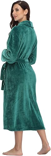 RONGTAI Peignoir long en polaire chaude pour femme, vert émeraude, Large