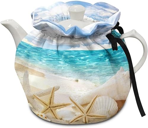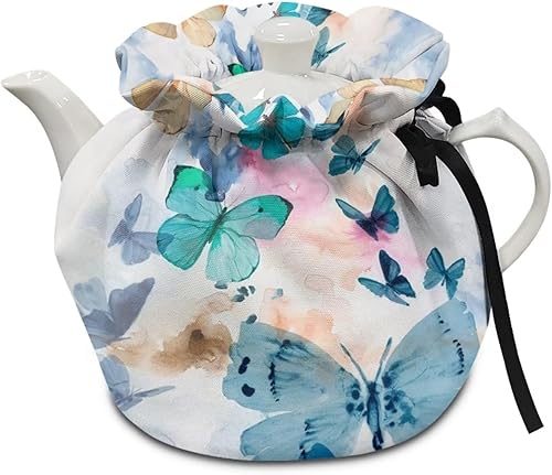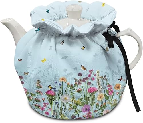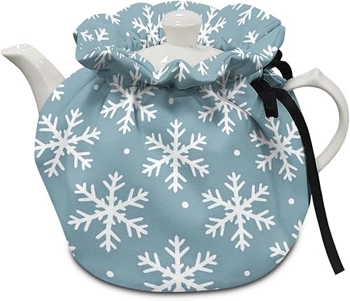 NETILGEN Housse de théière isotherme confortable pour décoration de la maison, de la cuisine, housse de protection contre la poussière, bouilloire chaude, cadeau pour femme, flocons de neige, bleu