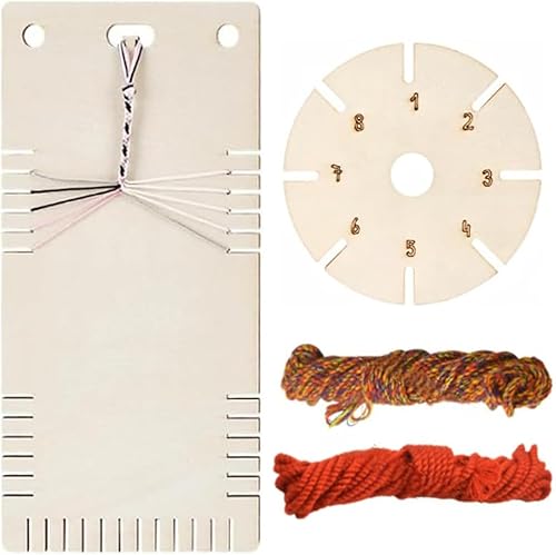 Étoile à nouer en bois, étoile, bracelets, fil à nouer, kit de bricolage pour bracelets d'amitié, 1 carré + 1 rond, 2 cordes en coton de 1,2 mm x 2,2 m (1 rouge + 1 multicolore), pour les amateurs de