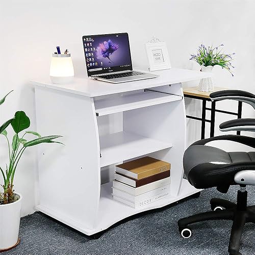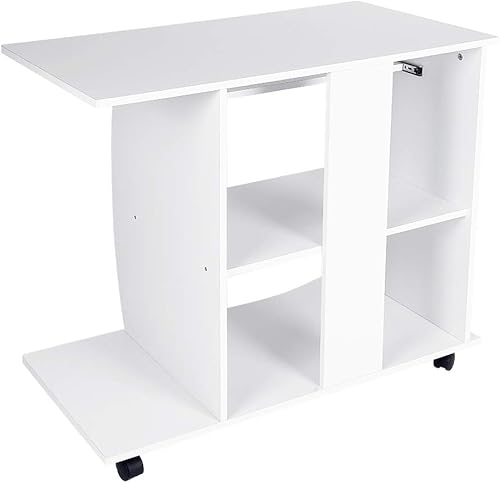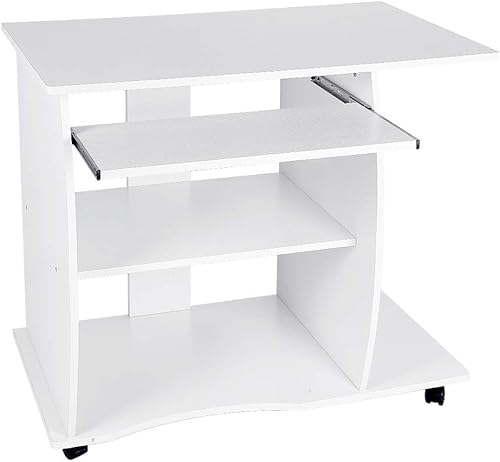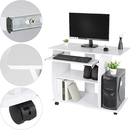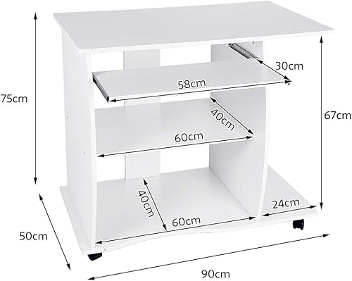 LANTUS Table pour Ordinateur Meuble Ordinateur Bureau pour Ordinateur Table de Bureau Noir Bureau Informatique Postes de Travail informatiques Bureau d'ordinateur à roulettes(90 * 50 * 75cm - Blanc)