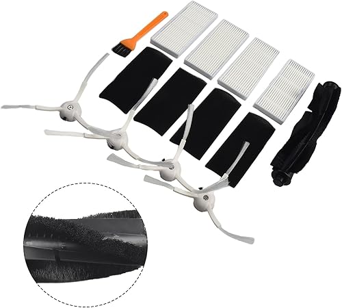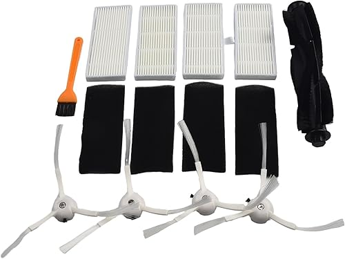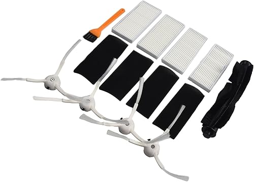 Lot de 10 pièces de rechange pour aspirateur robot pour Ultenic pour T10, 1 brosse principale + 4 filtres + 4 brosses latérales + 1 brosse de nettoyage