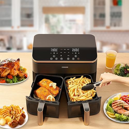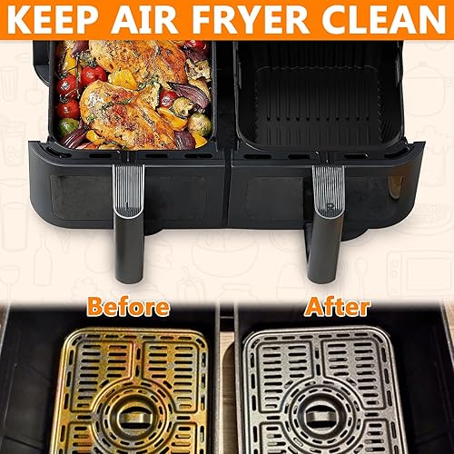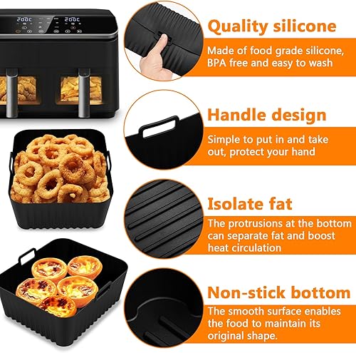 2 Pièces Moule Silicone Air Fryer pour Cosori 8,5L, Plat pour Air Fryer Cosori XXL,Réutilisable Panier Silicone Air Fryer pour Cosori 2 Compartiments, Air Fryer Accessoires Silicone Papier