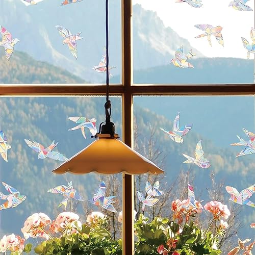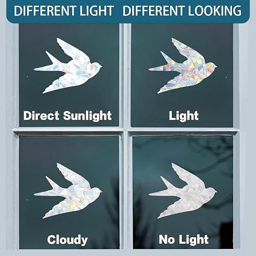 SUPERDANT Autocollants pour Fenêtre avec Hirondelles et Fleurs Autocollants pour Fenêtre avec Oiseaux Scintillants Autocollants pour Fenêtre avec Hirondelles Autocollants