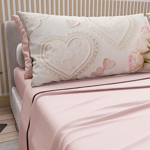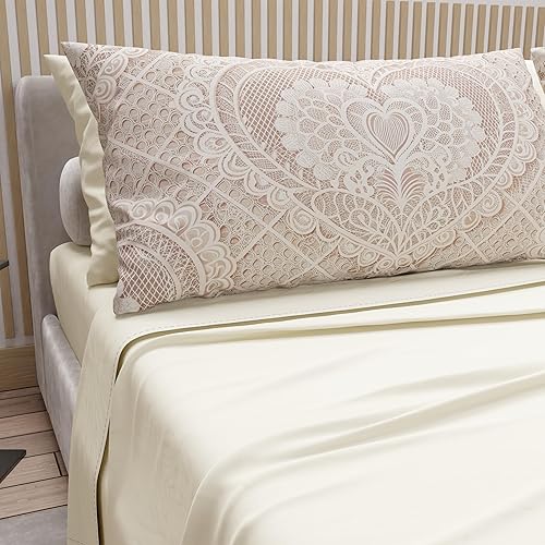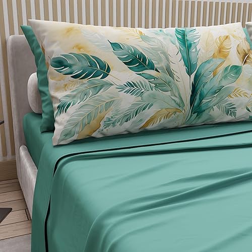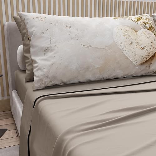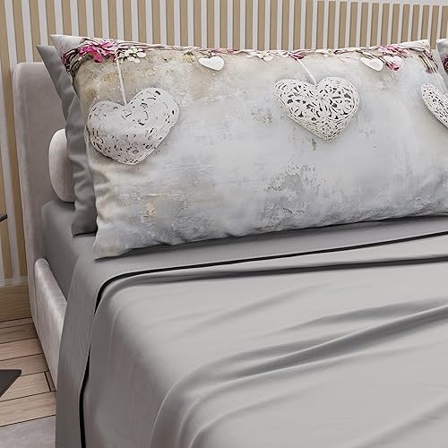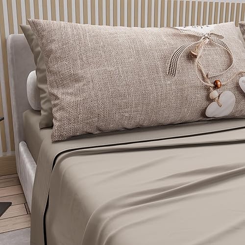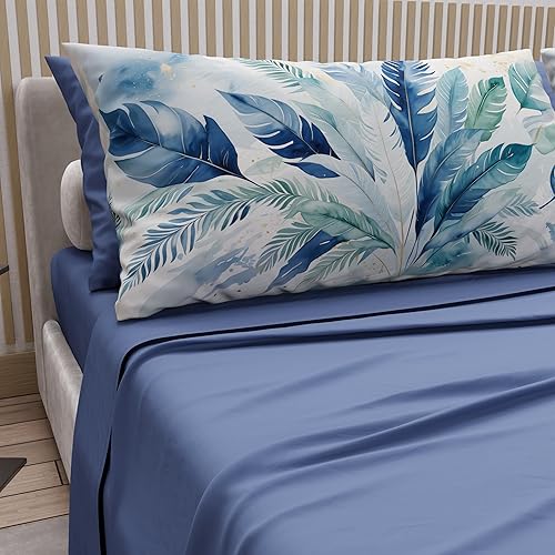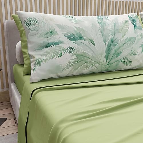 PETTI Artigiani Italiani - Parure de Draps en Coton pour Lit Double avec Taies d’Oreiller et Drap Housse 160x200, Motif 319 Poudre Claire, 100% Fabriqué en Italie
