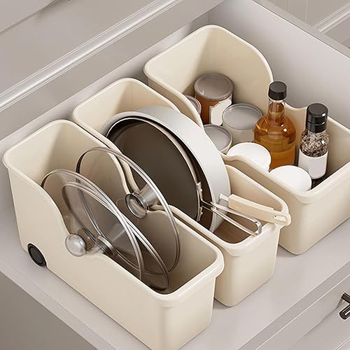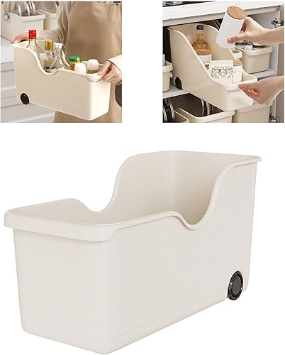 Bac de Rangement en Plastique, Petit Organisateur de Garde-manger avec 2 Roues, Conteneur de Rangement pour Tiroirs de Comptoir Sous les étagères de L'évier