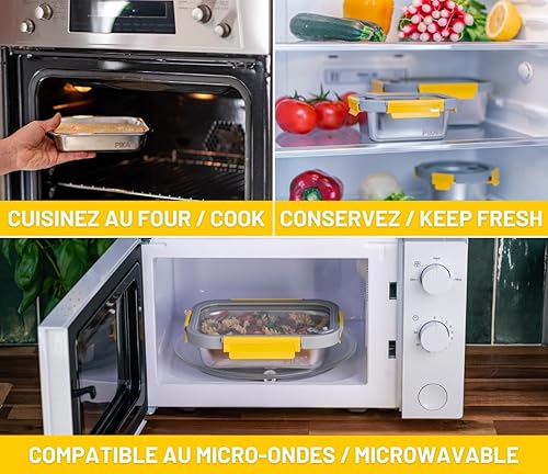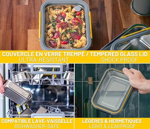 PIKA - Boite alimentaire 480ml en inox et couvercle en verre trempé – Hermétique et légère – Compatible micro-ondes, four, congélateur – MetalShock