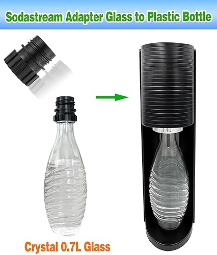 Adaptateur pour bouteilles en verre cristal Sodastream vers bouteilles en plastique Pour bouteille en verre Crystal 0,7 L Adaptateur de bouteille de soda à connexion rapide (noir)