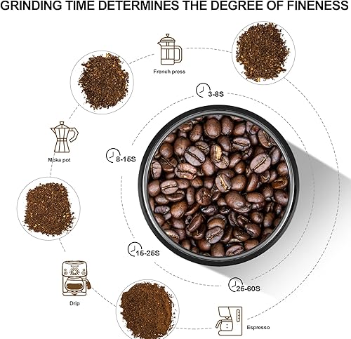 LINKChef - Moulin à café électrique 250 W avec grand bol amovible en acier inoxydable et fonction de stockage de fil électrique – Noir (CG-9230) Black-25