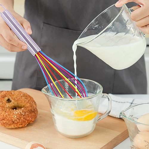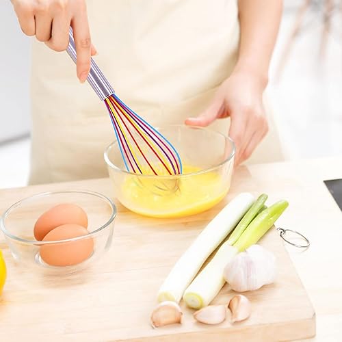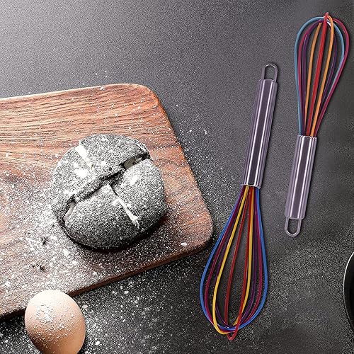 Lot de 2 mini fouets en silicone arc-en-ciel antiadhésifs pour la cuisine, la cuisine, le chocolat chaud
