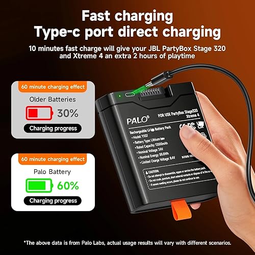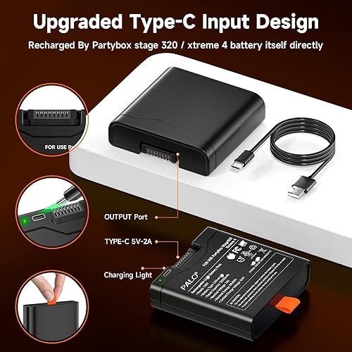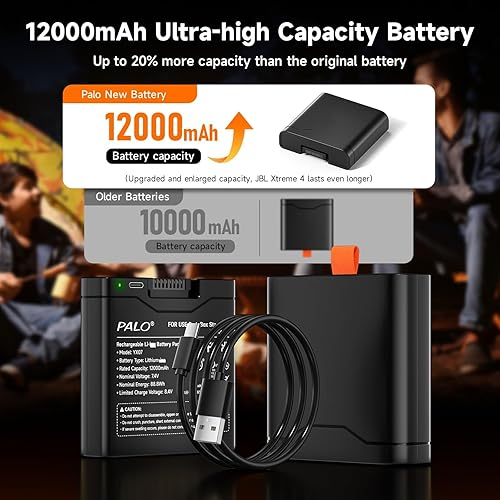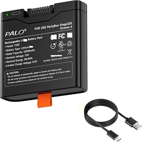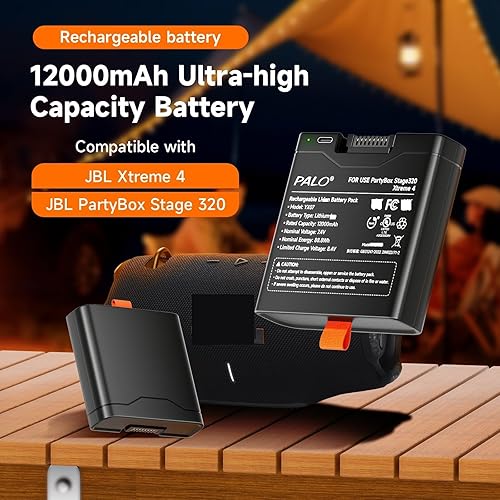 Batterie de remplacement 12000 mAh les enceintes compatible avec JBL Xtreme 4 et PartyBox Stage 320. Batterie externe de secours haute capacité avec entrée Type-C. Autonomie de 20heures. Chargement sé