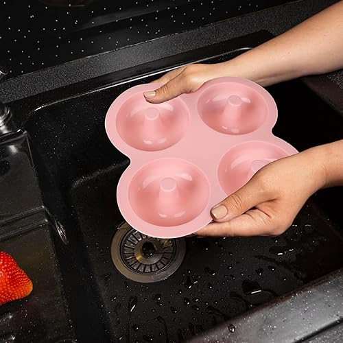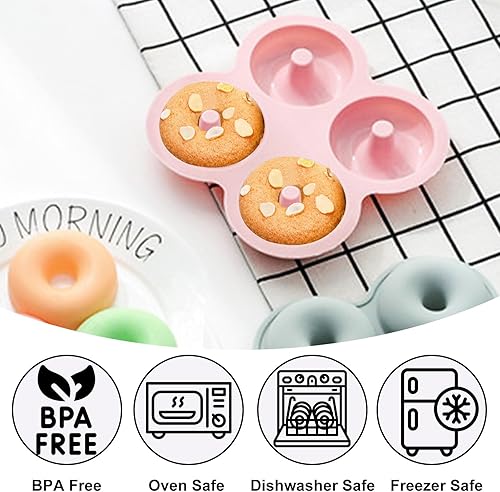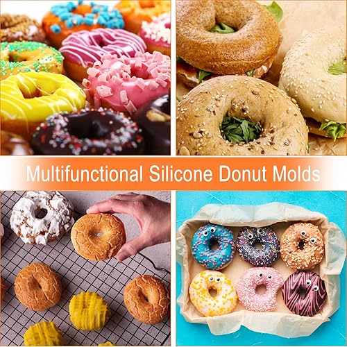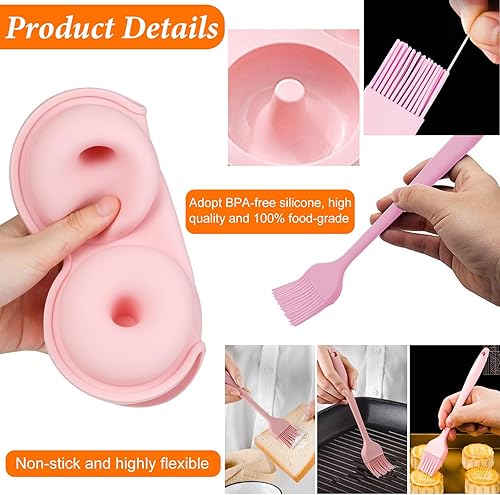 Jogoico Moule Donuts Silicone 2 Pièces, Moules à Beignets en Silicone à 4 Cavités Antiadhésive, Moule Donuts Cake Factory et Pinceau Silicone, Pour Beignets Gâteaux Bagels Biscuits Muffins