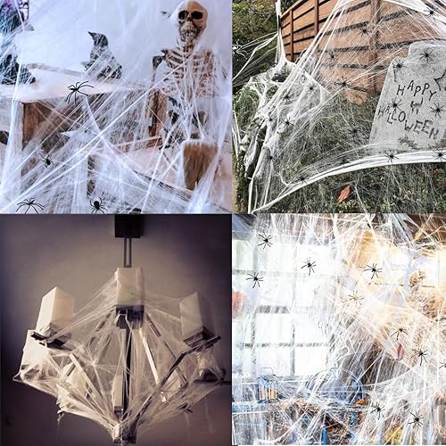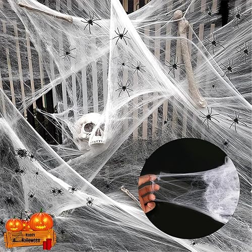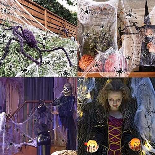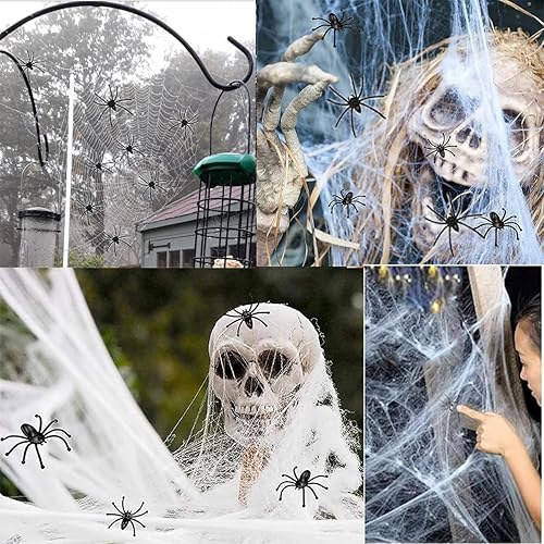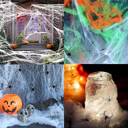 Gxlaihly Toile d'araignée Halloween, 200g Toile Araignée Extensibles Coton et 40 Fausses Araignées Deco Intérieur et Extérieur pour Halloween Fête Jardin Bar Thème de l'horreur Nuit