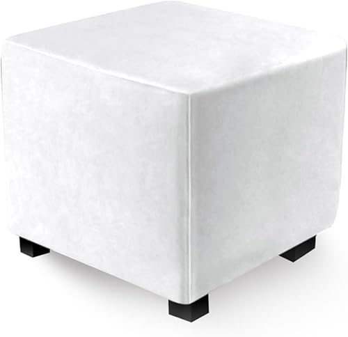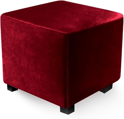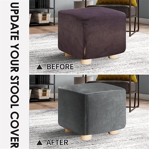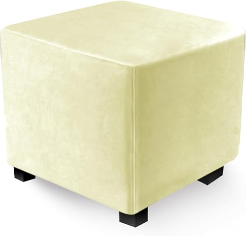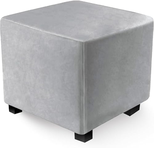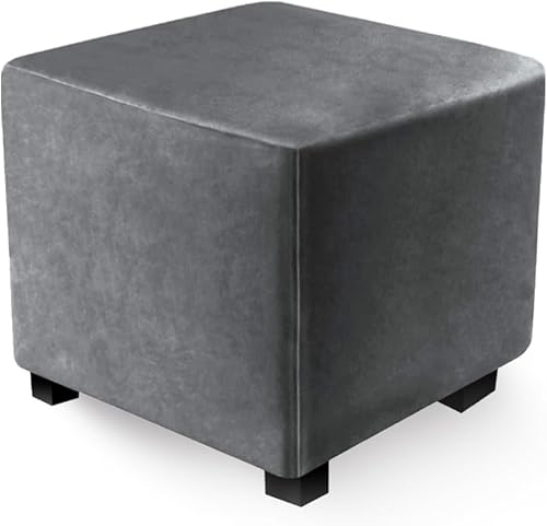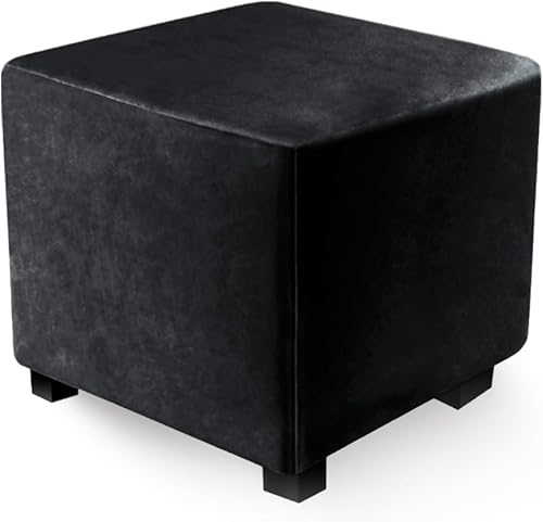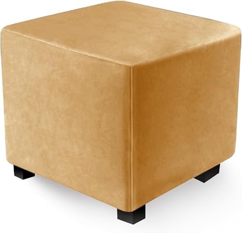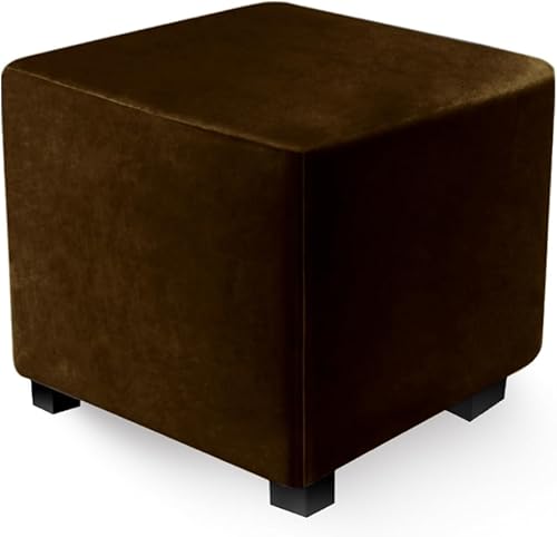 Highdi Housses Ottomane Carré Housses de Pouf Housse Repose-Pieds en Velours Doux Housse de Tabouret Anti-dérapante avec Fond Élastique, Plusieurs Couleurs Disponibles (Brun,45x45x45cm)