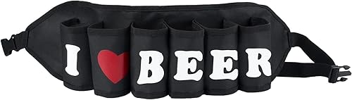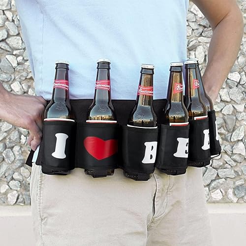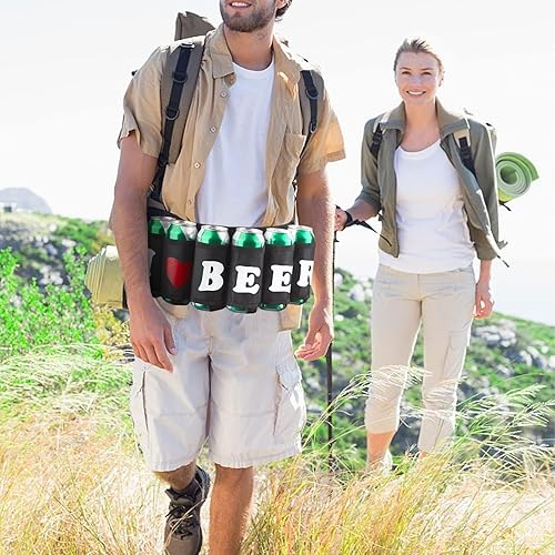 VINFUTUR Ceinture pour Bière Ceinture pour Porte Bière Soda avec 6 Porte-Gobelets Ceinture pour Buveur Portable Réglable Pliable pour Party Camping Escalade Randonnée