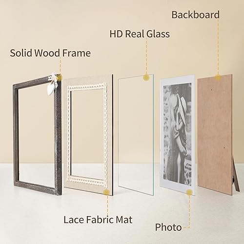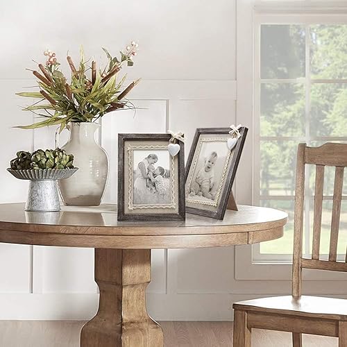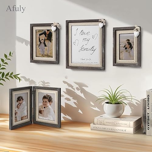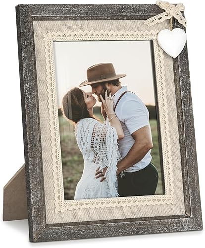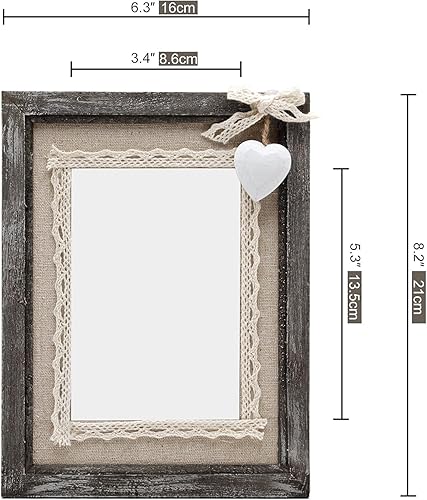 Afuly Cadre Photo 10x15 Bois Vintage Rustique Shabby Nature Marron Avec Coeur Blanc et Faveurs Mariage Toile Jute