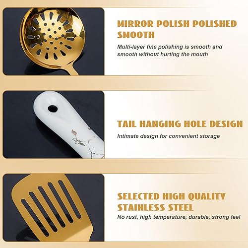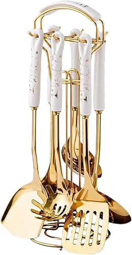7pcs / ustensiles de cuisine set Ustensiles en or en acier inoxydable pour cuisiner avec porte-lave-vaisselle ustensile lave-vaisselle.