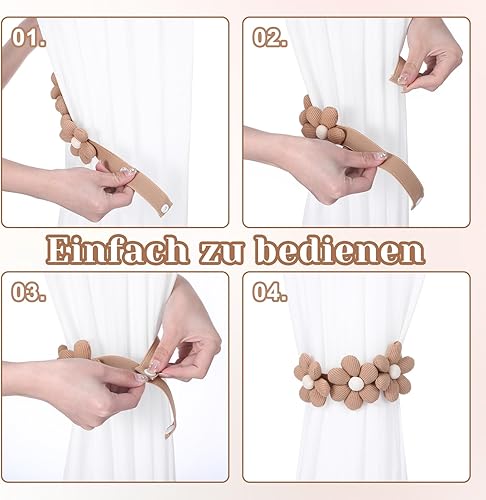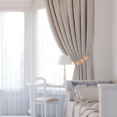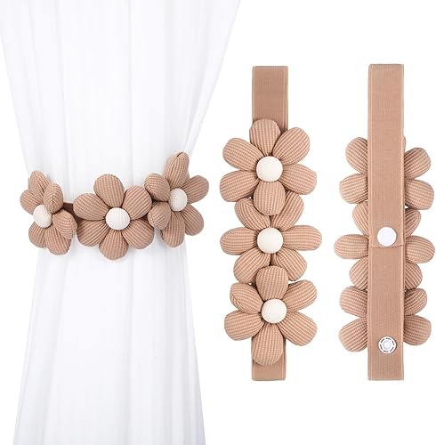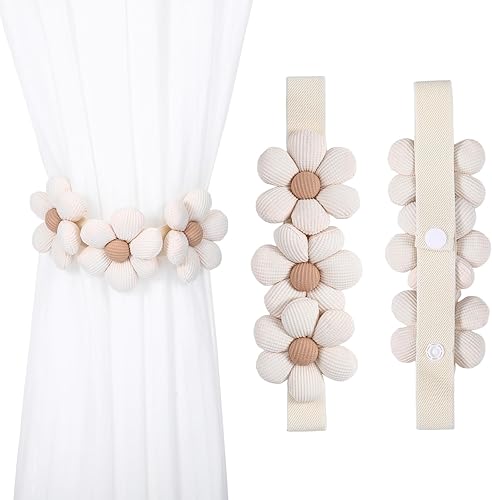 LongHoneySong Lot de 2 embrasses de rideaux pour chambre d'enfant - Décoration marguerites - Embrasses de rideau décoratives pour chambre d'enfant / maison / rideau de chambre d'enfant (riz)
