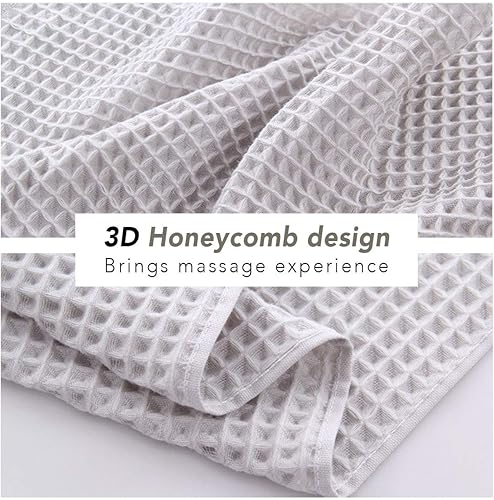 4pcs Essuie-Mains Conception en nid d'abeille 3D 100% Coton Doux et Moelleux 13.3 × 29 (inch) / 34 × 74(cm)