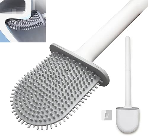 Lot de 2 brosses WC en Silicone avec Pointes en Silicone, séchage Rapide, Brosse pour Toilettes, Baignoire, Salle de Bain avec Support Mural, Brosse de Nettoyage créative avec Base adhésive.