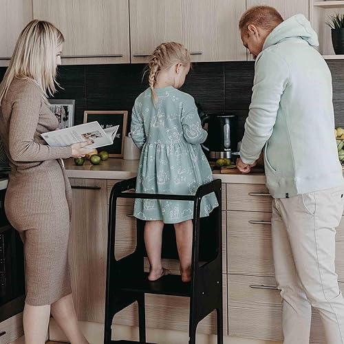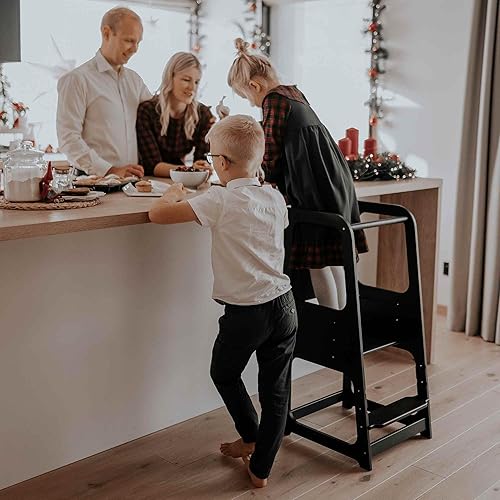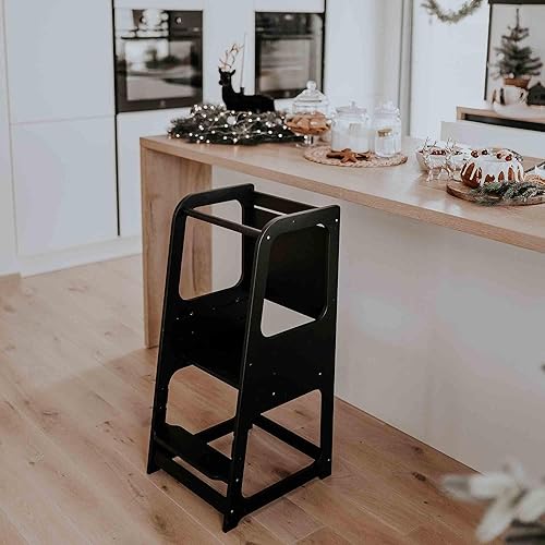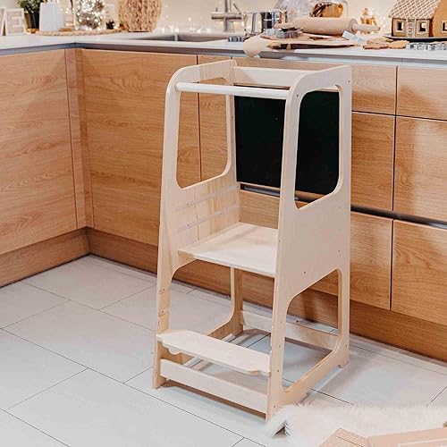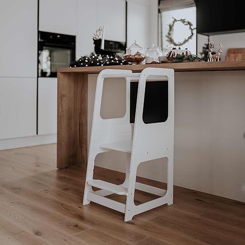 La Tour d’Apprentissage/d’Observation Montessori est Un Support/marchepied de Cuisine réglable, Tabouret de Cuisine avec Tableau (Blanche)