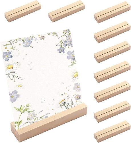 Smomend 10 Pièces Porte Carte Bois, Porte Menu 10,5 x 2,5 x 1,5 cm, Support Photo et Cartes Postale, Porte Nom ou Numéro de Table Idéal pour Décoration Mariage Banquet Restaurant Fête