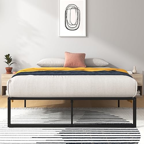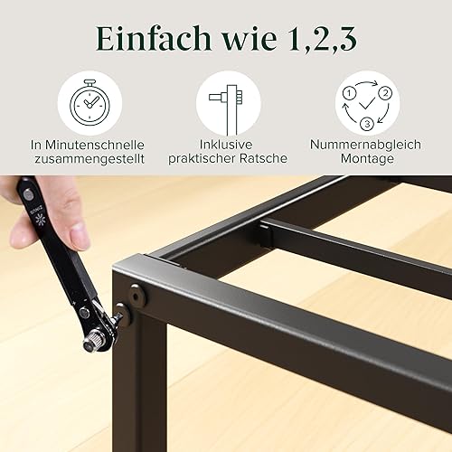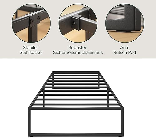 Zinus Lorelai Lit 140 x 200 cm – Hauteur 36 cm avec Espace de Rangement sous Le lit – Plateforme en métal – Noir
