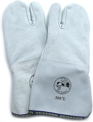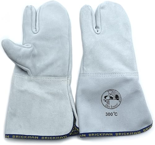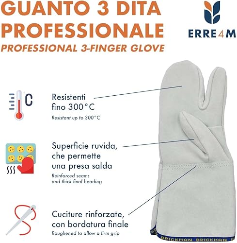 Erre4M Gants de four 3 doigts poignet de 15 cm professionnels en cuir de 300 °C