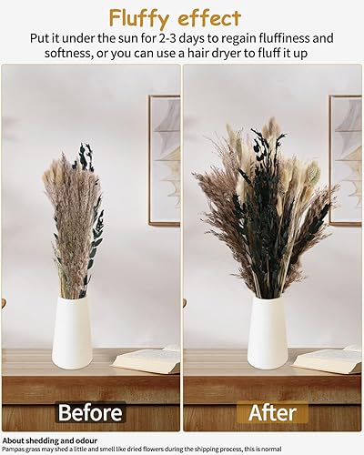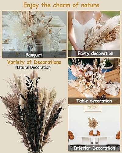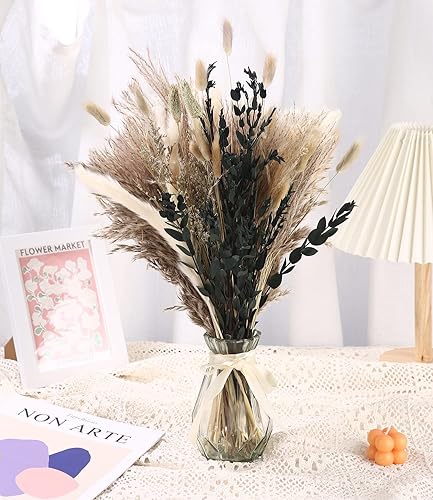 Jissta Pampas sechees Decoration,Ensemble de Fleurs séchées Naturelles 79 pièces,Eucalyptus seches Naturel,Fleurs séchées pour décoration bohème Salon Chambre à Coucher Mariage Bouquet
