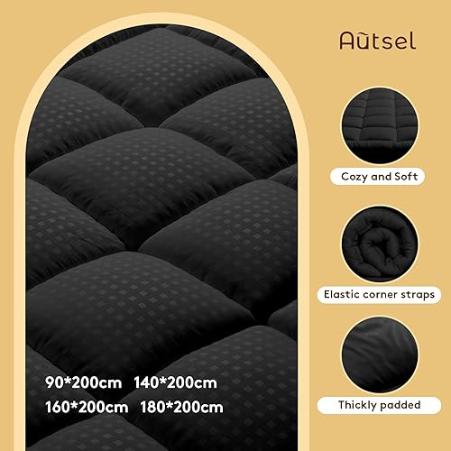 Autsel Surmatelas 160 x 200cm Couvre Matelas en Microfibre Extra Doux et Respirant Surmatelas avec Bon Soutien (Gris Foncé)