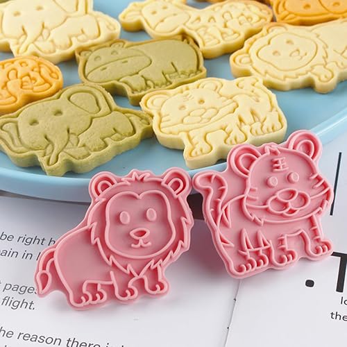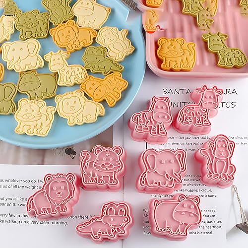 VYIBPDY 8 Pcs Emporte Pièces Animaux, 3D Moule Biscuit en Plastique, Emporte Piece Enfants, Moule à Biscuits Patisserie, Decoupoir Patisserie, Tampon Biscuits Animaux
