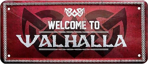 Blechschilder Plaque décorative en métal avec inscription humoristique « Welcome to Walhalla » - Idée cadeau pour un anniversaire ou Noël - 28 x 12 cm