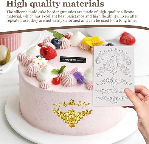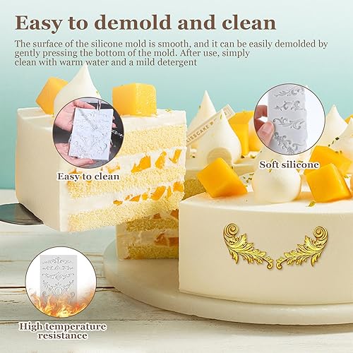 LINTRA 5 Pièces Moule à Gâteau Vintage, Texture 3D Moule à Fondant en Silicone Baroque, Style Baroque Moules en Silicone en Relief, pour la Cuisson de Gâteaux, Gelées, Chocolats