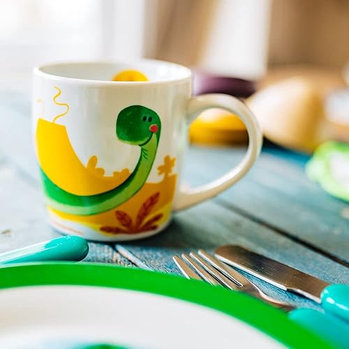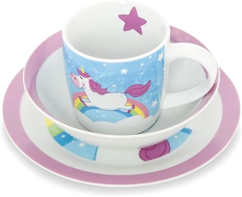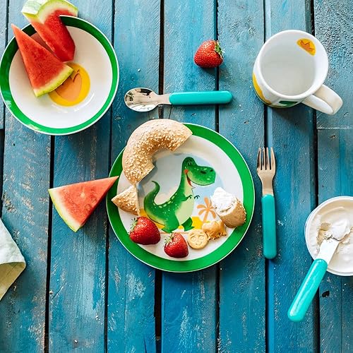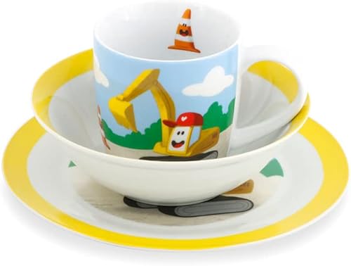 BIOZOYG - Service de Vaisselle pour Enfants en Porcelaine - Set Petit Déjeuner 3 Pièces, Lavable au Lave-Vaisselle, Assiettes Tasses Bols avec Motif, Idées Cadeaux pour Enfants, Excavateur