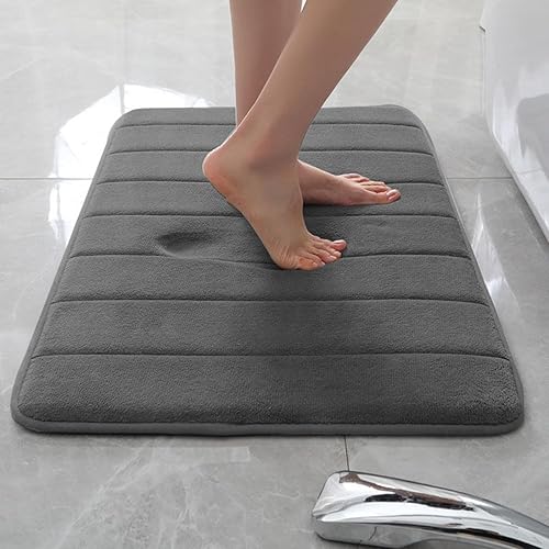 Waigg Kii Tapis de bain extra doux pour salle de bain, antidérapant, absorbant et à séchage rapide, en mousse à mémoire de forme (160 x 50 cm, gris foncé)