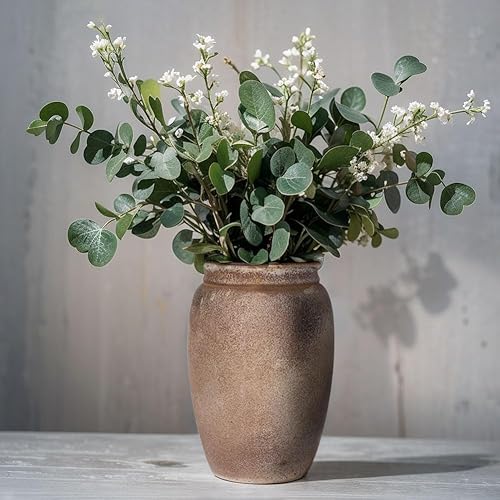 Vase rustique en céramique de 20,6 cm, vase de ferme pour décoration d'intérieur, vase décoratif en terre cuite et vase vintage, vase marron adapté pour la décoration de la maison, du salon, de