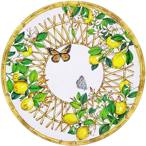 Les Jardins de la Comtesse - Plat de Présentation Rond en Mélamine - Capri - 35,5 cm - Citrons jaunes - Service de Table de la Vaisselle Quasi-Incassable MelARTmine