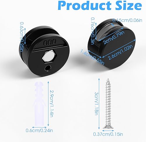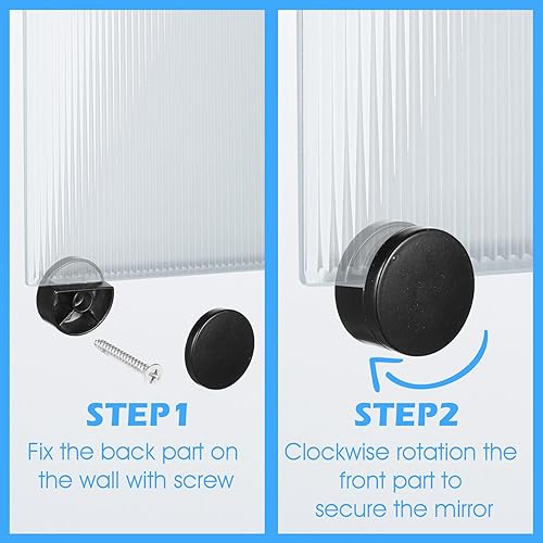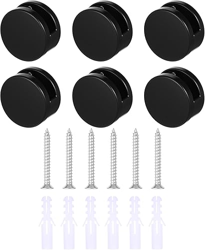 HJZHII Lot de 6 supports de miroir sans cadre, 3-5 mm, kit de quincaillerie pour miroirs robustes à suspendre au mur avec vis métalliques pour commode de salle de bain, verre épais, noir