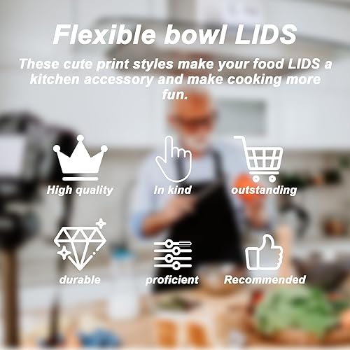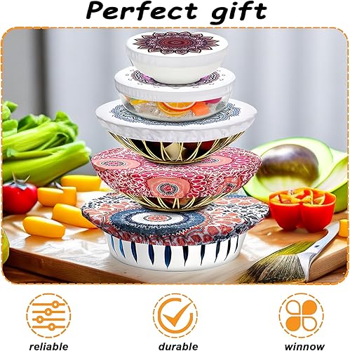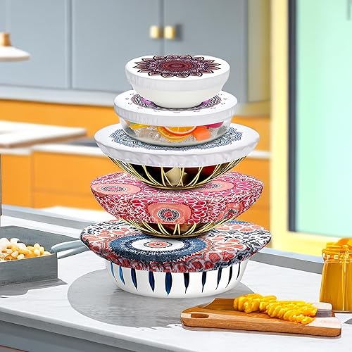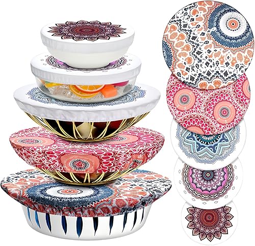 SPORWAY 5Pcs Charlotte Alimentaire: Cache Pots Extensibles en Tissu Imperméable et Flexible pour Aliments, Réutilisables, avec Bande Elastique, Style Imprimé