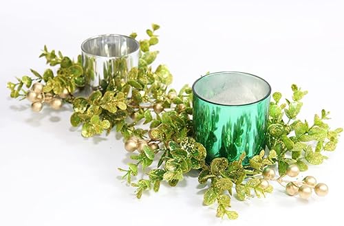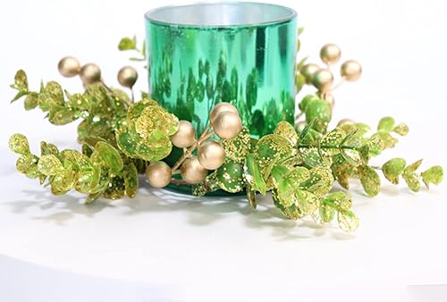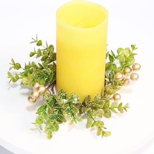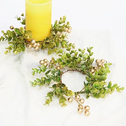 Générique - Lot de 4 anneaux de bougie d'eucalyptus artificiels, anneaux de bougie de Noël, occasion multiple, matière artificielle, couleur verte