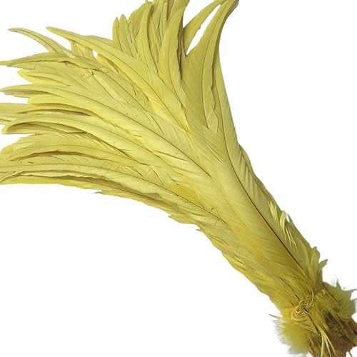 Shekyeon 30–35 cm Queue de coq plumes à utiliser pour chapeaux Costume Décoration Lot de 50 Jaune