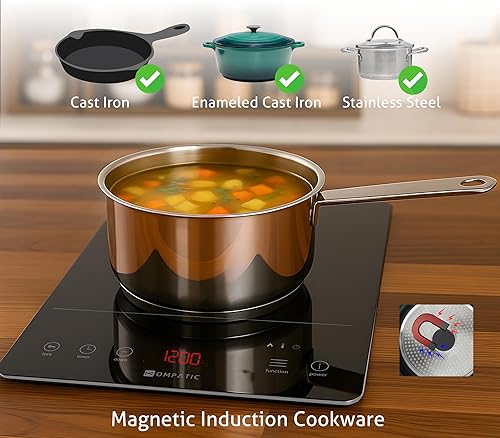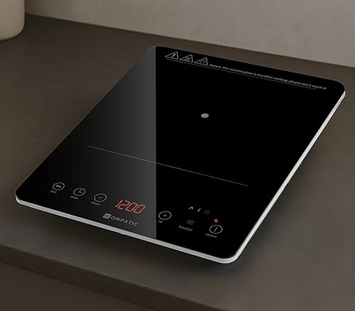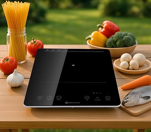 KOMPATIC KFE 20S Plaque à induction portable, 2000W, Zone unique, Écran LED, Minuterie, Commandes tactiles, Sécurité enfant