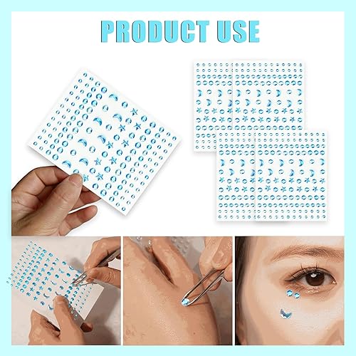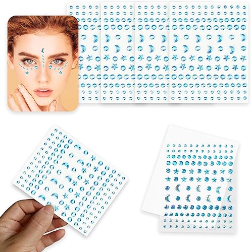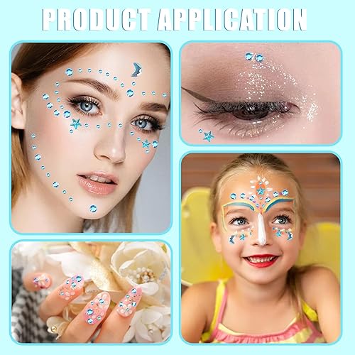 4 pcs gemmes Glitter Stone autocollants, visage gemme tatouage temporaire Pierre visage yeux corps partie maquillage Festival (bleu)