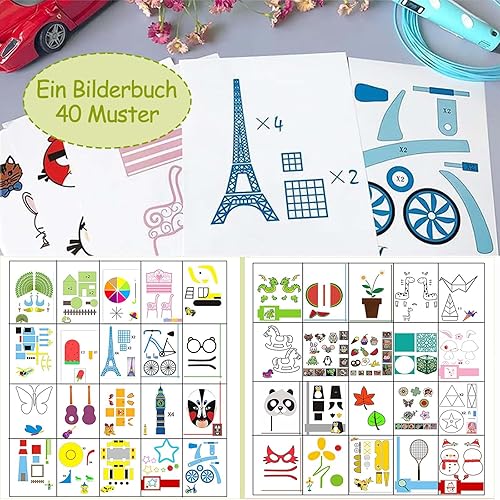 Pochoir de stylo 3D, 40 motifs, en papier épais avec une plaque transparente, modèle de stylo d'impression 3D, pochoirs de graffiti pour enfants, cadeaux de bricolage