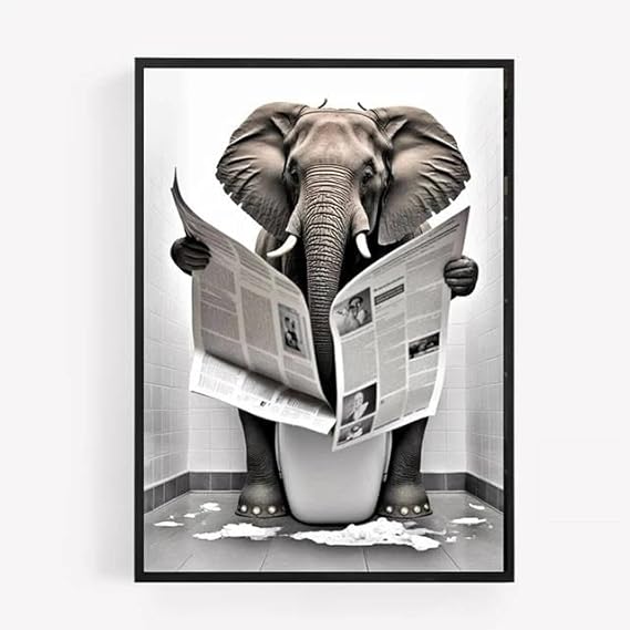 Affiches De Journaux Avec Animaux Amusants, Éléphant Assis Sur Les Toilettes, Lecture De Journaux, Imprimés De Peinture Sur Toile, Décor Mural De Salle De Bains, Images Murales De Wc 40X50Cm Sans Cadr